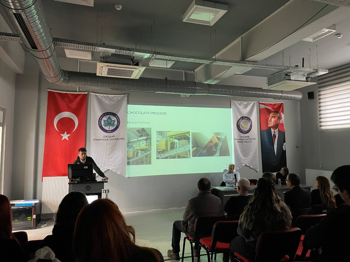 Bölümümüzde, ESOGÜ Gıda Topluluğu'nun organizasyonu ile 29.12.2025 tarihinde “Çikolata Sektörü ve Kariyer Fırsatları” konulu seminer gerçekleştirilmiş olup, değerli tecrübelerini ve sektördeki güncel gelişmeleri öğrencilerimizle paylaşan Barry Callebaut ekibinden Fabrika Müdürü Sayın Emin Yılmaz’a, Kalite ve Regülasyon Müdürü Sayın Cihat Akbaş’a ve İnsan Kaynakları Uzmanı Sayın Elif Su Hepşen’e kıymetli vakitleri ve ilham verici sunumları için içtenlikle teşekkür ederiz.